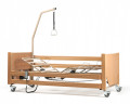 Боковые ограждения регулируются по высоте и опускаются ниже уровня основания, что облегчает комфортное сидение пациента на электрической кровати. Колеса, установленные на медицинскую кровать, оснащены тормозами с индивидуальной блокировкой. Головная и бедренная секция регулируются по углу наклона от пульта дистанционного управления, ножная секция вручную. В многофункциональной